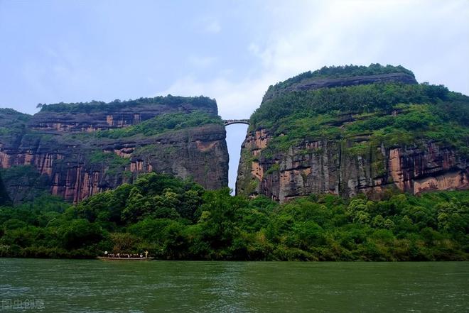 水时深时浅、时缓时急。筏工非常热情地给我们讲解沿途的景致。他津津乐道给我们介绍起龙虎山绝无仅有的“十不得”,叫做“尼姑背和尚走不得”,“仙女配不得”,“莲花戴不得”,“仙桃吃不得”,“丹勺用不得”,“道堂坐不得”,“云锦披不得”,“石鼓敲不得”,“剑石试不得”,还有就是“玉梳梳不得”。他指着皱若锦缎般的云锦石说,这就是披不得的云锦,你们再看云锦的上面,谁能告诉我,那些状如白色瀑布的东西是什么呢?顺着他手指的方向,果然有一片凝固着的银色瀑布。大家猜来猜去,全都没猜中。没想到,居然会是鸬鹚鸟的粪便!白色的鸟粪从耸立的峭壁上直泻而下,久而久之,堆积如瀑,在阳光的照射下,熠熠生辉。这真是天下之大,无奇不有。筏工讲得兴致盎然,不料却戛然而止,不再有下文。另一个筏工说,后面的风景更美,传说更生动,但要想再听,每人需付费10元。费用虽不多,但却扫了大家的兴致,不听也罢。