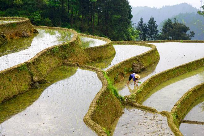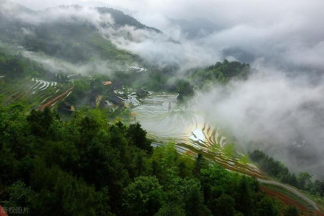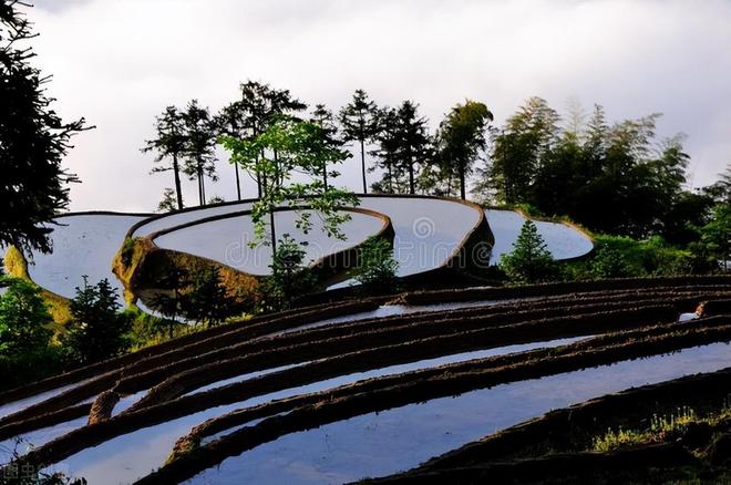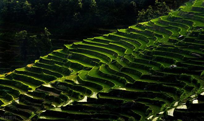 早上,啾啾的山鸟把我唤醒,洗漱好,推开窗户,眼前一副画卷铺展开来,眼下是一丘丘灌水打亮的梯田,远处也是一排排梯田,我带好充满电的手机,跑到梯田间感受这水汪汪的排山倒海而来的梯田,依照陡峭的山势建造的梯田,从山脚到山顶,细亮如月牙,如镰刀,如银器,把一座山跟四面八方的山给装饰起来,亦如湘西寒光闪闪的刀梯,亮晃晃的,从山脚一直盘旋到山顶,也如少女的打了皱的裙摆,在山里轻飘飞舞起来。