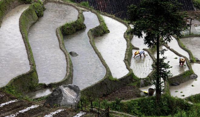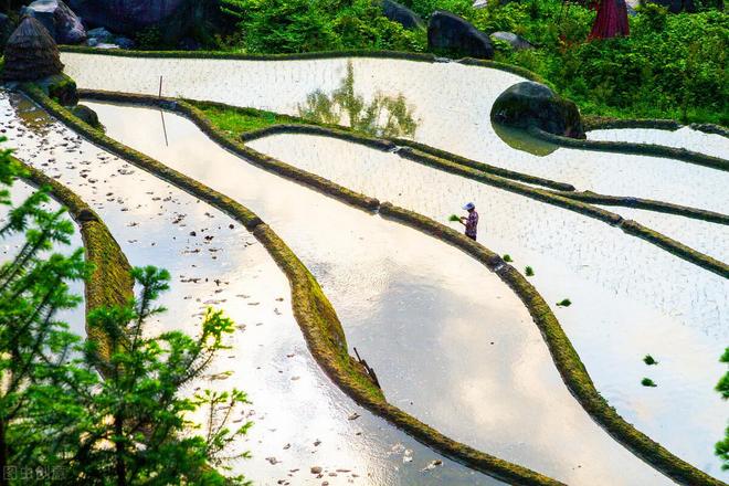 紫鹊界无塘无库,也没有灌溉用的沟渠,但山有多高,水有多高,水有多高,田就有多高。山上到处是星星点点的泉水,只需在田塍的任一处挖一个缺口,或安一段竹筒,水便从上往下,从这一丘流到那一丘。即便是某个地方没有泉水冒出,也只需沿着梯田的内侧,取田里的泥堵成一条通道,水便会顺着那条通道流到需要的任何地方。